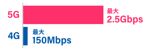 従来の4Gに比べ、通信速度が大幅に高速化!