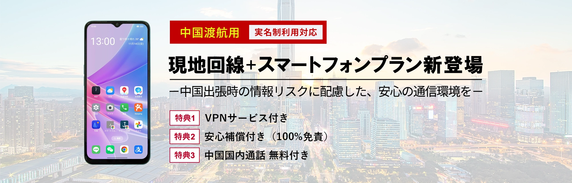 - 中国電信社の回線を新規発番しご提供します。使いまわし番号ではないため「実名制利用」に対応しています。